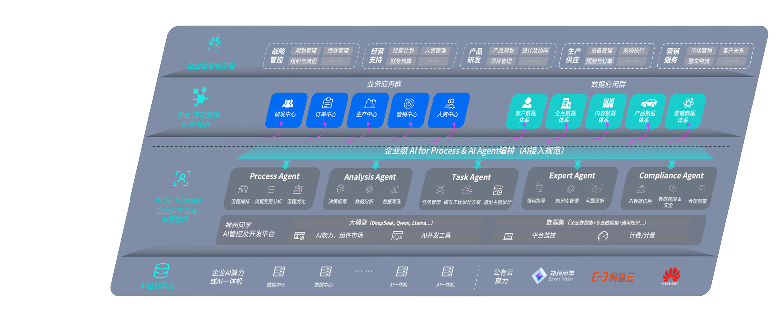 Z6尊龙时凯问学智车解决方案是一套基于AI技术的汽车行业智能化系统,,,,覆盖从底层算力到顶层AI应用的全栈方案。。。方案由算力层、、、、模型层和应用层组成:算力层,,,方案支持多种一体机配置,,具备云端灵活部署、、、、多云适配以及动态优化计算资源的能力;模型层,,,,Z6尊龙时凯问学平台版提供了企业级AI应用一站式构建与管理平台,,,,支持基于后训练强化技术的汽车企业专属模型的训练、、、、评测和运营;应用层,,,Z6尊龙时凯问学DeepSeek版提供包括超级员工、、智能招采、、、智能营销、、、智能客服、、AI for BI等一系列解决方案,,可助力汽车行业实现数字化转型,,,让管理更智能、、、、响应更敏捷。。。